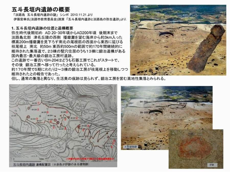 弥生時代の後期 淡路島の北部津名丘陵で出土した日本最古最大級の鍛冶工房村五斗長垣内遺跡。