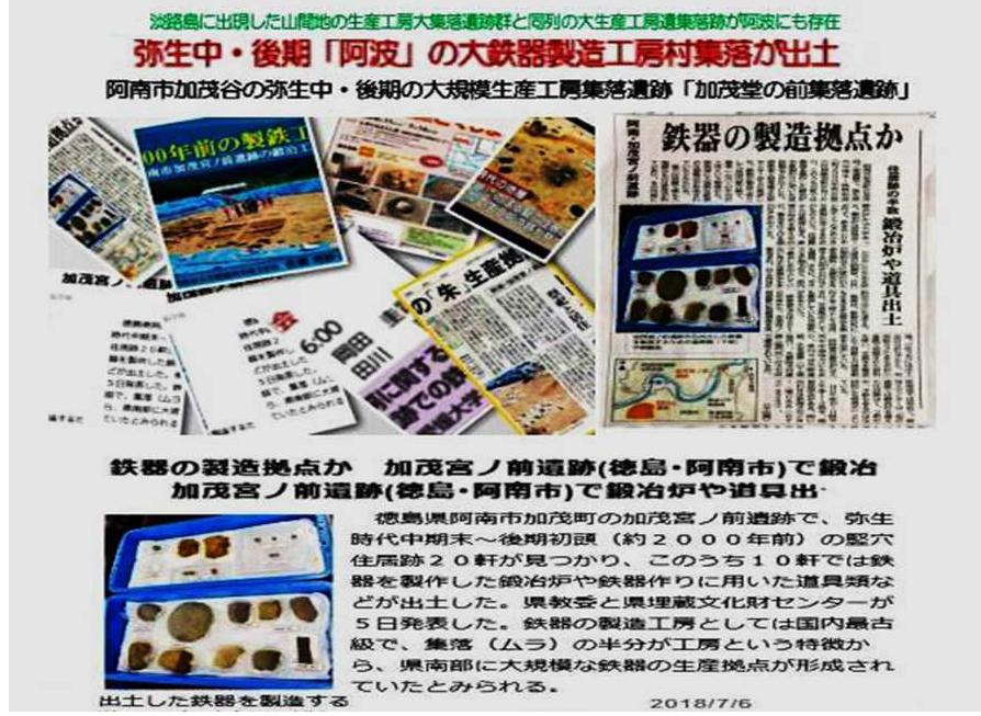 この視点でさらに遺跡調査が進めば、徳島や淡路島に出土した弥生時代最古最大級の鍛冶工房の実像も浮かび上がってくるだろう。2019.6月村上教授講演動画・講演レジメより整理掲載 by Mutsu Nakanishi