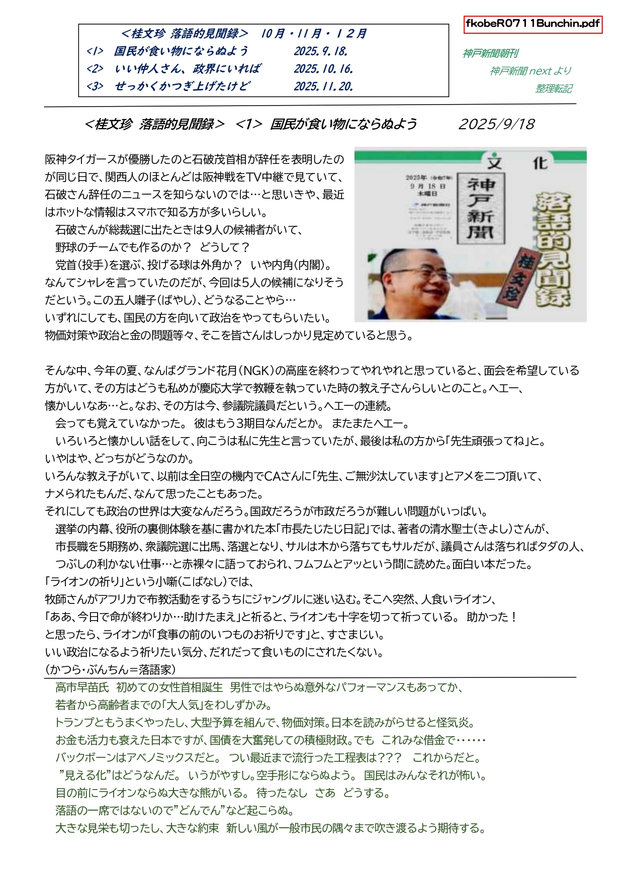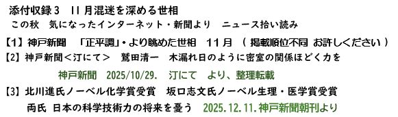 四季折々 神戸便り・思いつくまま・from Kobe 2025.12.2.更新 < New 掲載記事リスト > < from Kobe 2025 全掲載リスト > mutsu2025list.htm by M. Nakanishi 2025.12.10. 四季折々 ・思いつくまま from Kobe 2025 < New 掲載記事リスト >