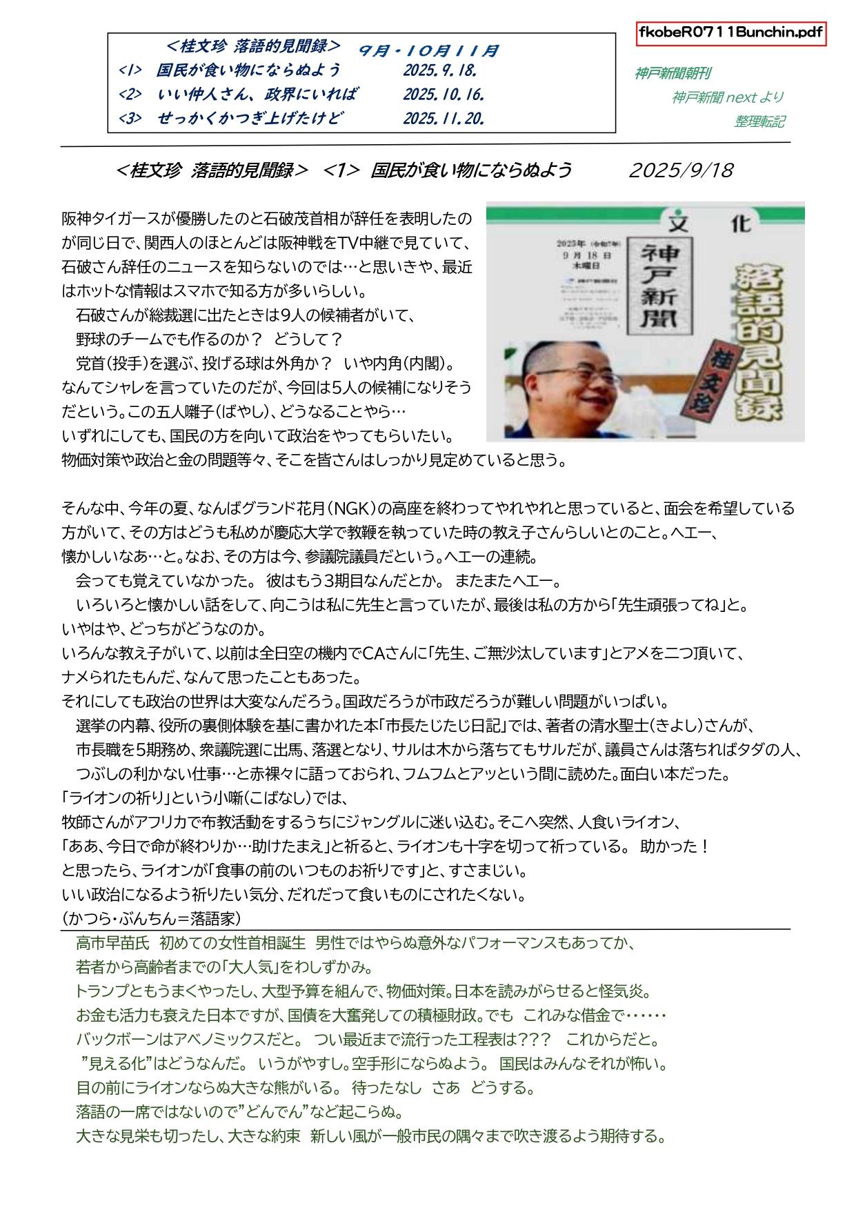 四季折々 神戸便り・思いつくまま・from Kobe 2025.12.2.更新 < New 掲載記事リスト > < from Kobe 2025 全掲載リスト > mutsu25list.htm by M. Nakanishi 2025.10.10. 四季折々 ・思いつくまま from Kobe 2025 < New 掲載記事リスト >