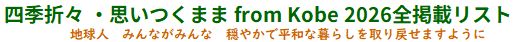 四季折々 神戸便り・思いつくまま・from Kobe 2026.2.26.更新 < New 掲載記事リスト > < from Kobe 2026 全掲載リスト > 四季折々 ・思いつくまま from Kobe < New 掲載記事リスト >