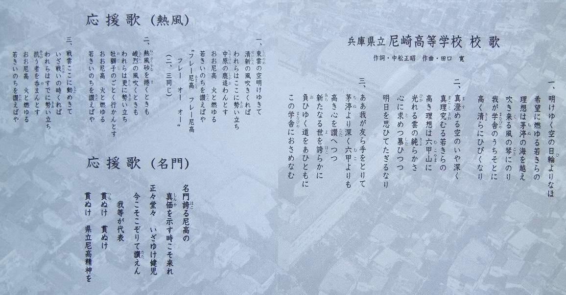 | 1. | 懐かしい県立尼崎高校の校歌・応援歌 祝賀会参加者に配られたCDより |