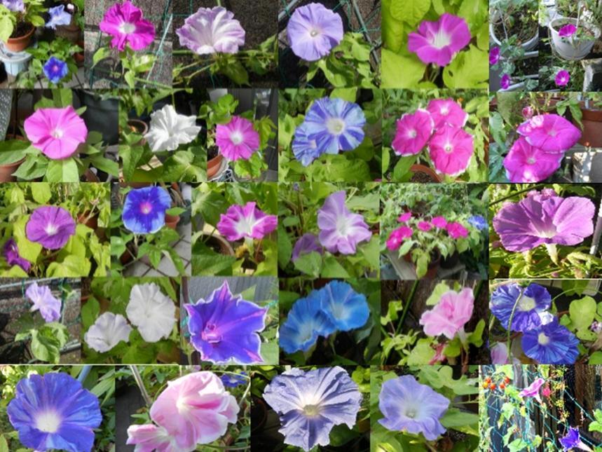 ****************************************************************************************************************************************夏の早起きの楽しみ 今年も数多くの朝顔が咲き、すがすがしい朝を演出してくれました