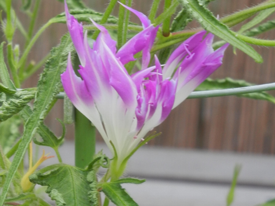 早朝に咲き始め、昼にはしぼんでしまう半日の花 蕾の中に姿を封じ込めていて、早朝咲くまでその姿を見せない