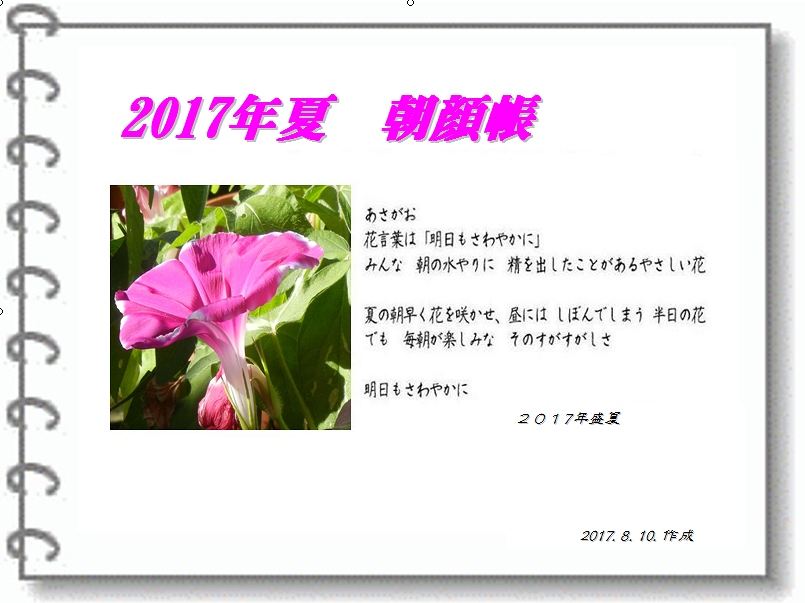 2017年夏 わが家の庭の朝顔帳 2017.8.10.