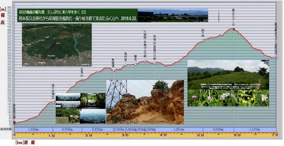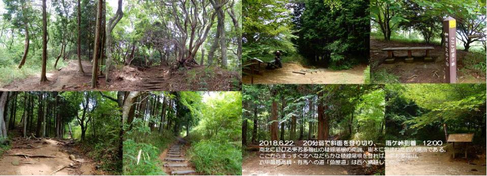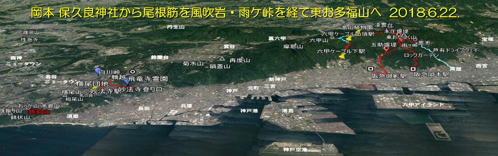 岡本保久良神社から尾根筋を風吹岩・雨ケ峠を経て東お多福山へ 2018.6.22.