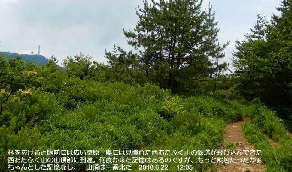 南北に延びる東お多福山稜線の南端 雨ケ峠 2018.6.22. 雨ケ峠からお多福山の稜線を西へ乗越せば住吉谷 北になだらかな稜線を進めば 草原の広がる東お多福山 . < 雨ケ峠より、東お多福山稜線を北にたどると緑の草原が広がる東お多福山>