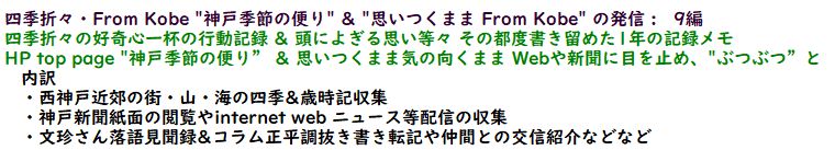 ( ***)月は更新当月のFrom Kobe 季節の便りを入れています ![]() ![]() ![]()
